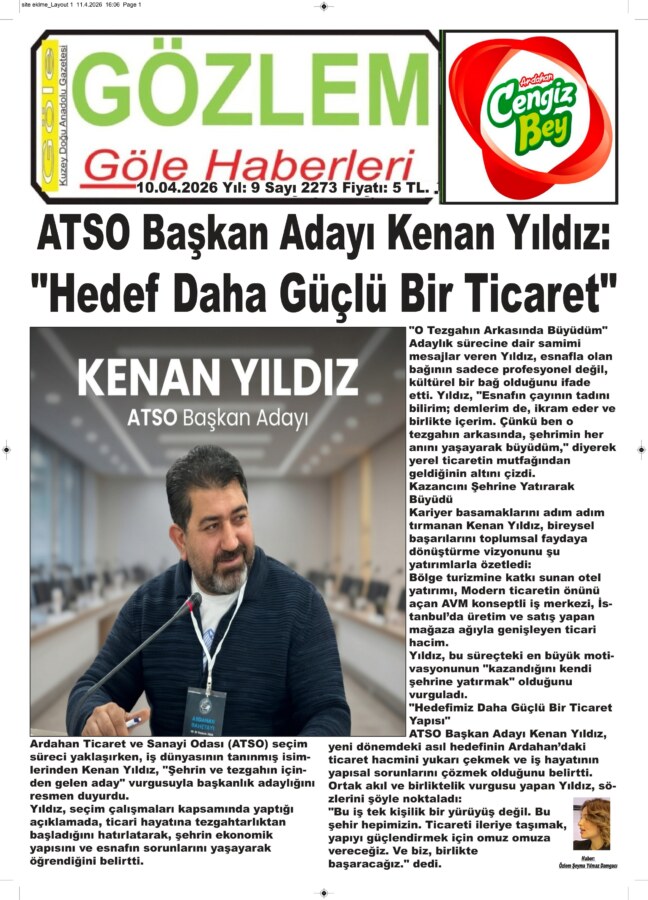 Ardahan Ticaret ve Sanayi Odası (ATSO) seçim süreci yaklaşırken, iş dünyasının tanınmış isimlerinden Kenan Yıldız, “Şehrin ve tezgahın içinden gelen aday” vurgusuyla başkanlık adaylığını resmen duyurdu.