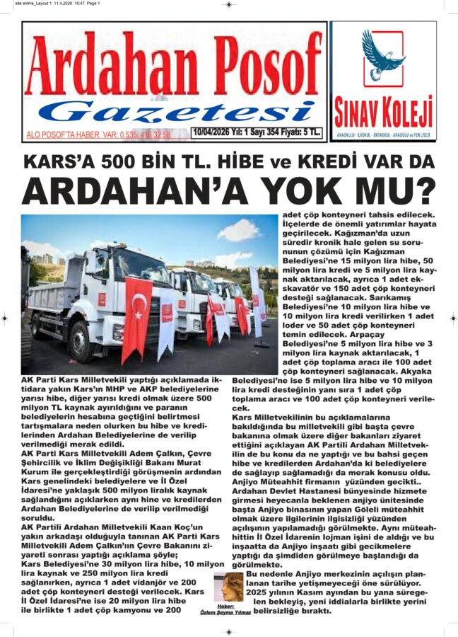Kars Milletvekilinin bu açıklamalarına bakıldığında bu milletvekili gibi başta çevre bakanına olmak üzere diğer bakanları ziyaret ettiğini açıklayan AK Partili Ardahan Milletvekilin de bu konu da ne yaptığı ve bu bahsi geçen hibe ve kredilerden Ardahan’da ki belediyelere de sağlayıp sağlamadığı da merak konusu oldu.